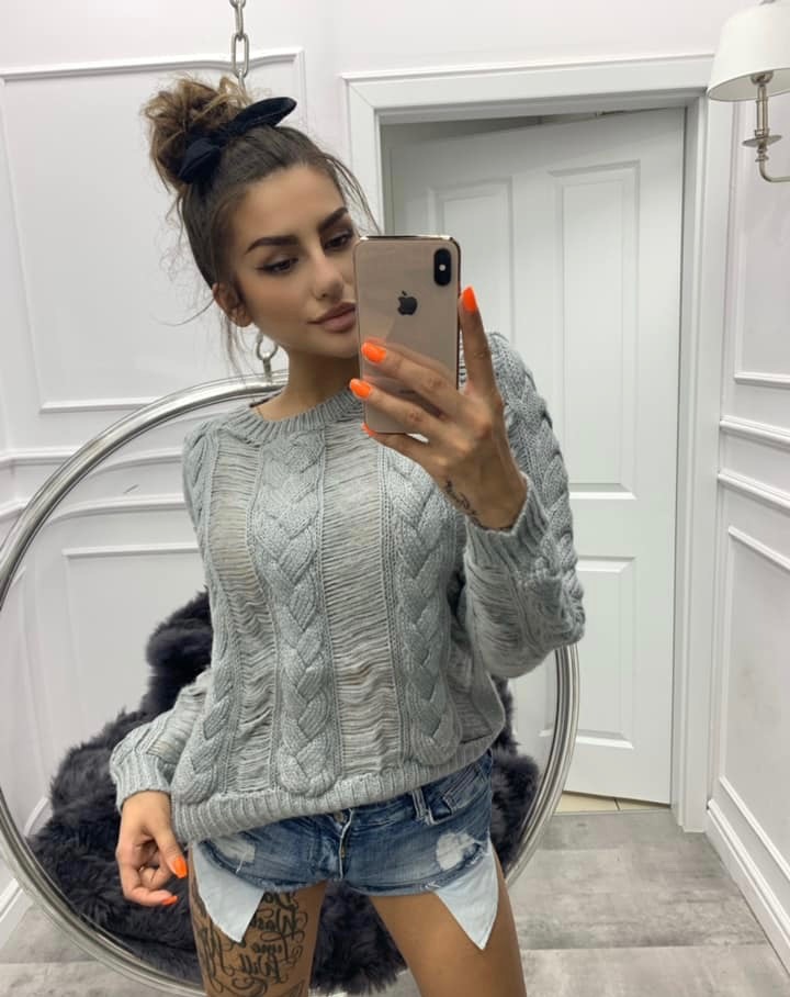 Sweter z dziurami Rami Grey wykonany jest z bardzo przyjemnego materiału. Ozdobiony warkoczem i imitacjami dziur zapewnia stylowy wygląd. Idealnie pasuje do skórzanych spodni, bądź spódniczki.